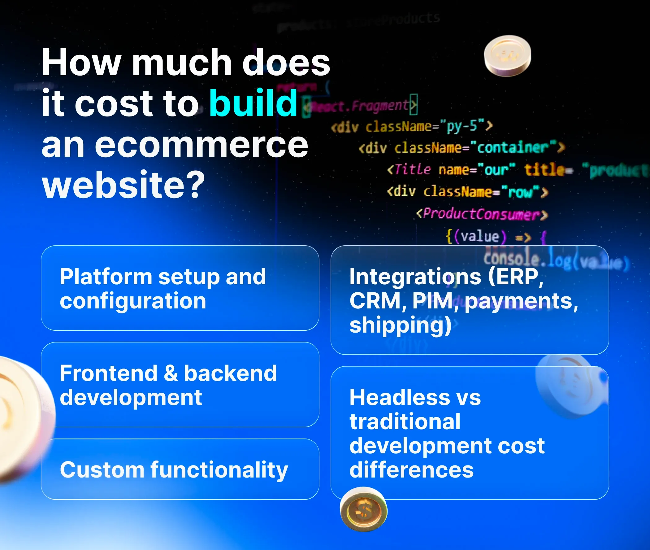 The price range is wide because "an ecommerce website" can mean anything from a clean Shopify build with a paid theme to a headless B2B platform with ERPand PIM.