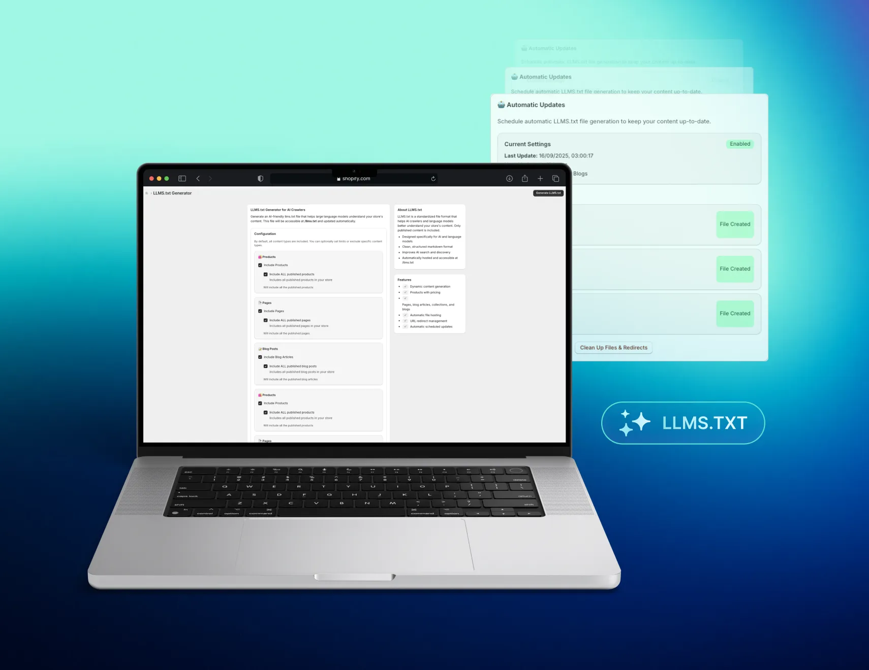 Our Shopify app auto-generates an llms.txt file to keep your content AI-ready.